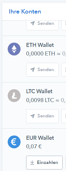 Klicke anschließend bei deinem EUR Wallet auf Einzahlen.