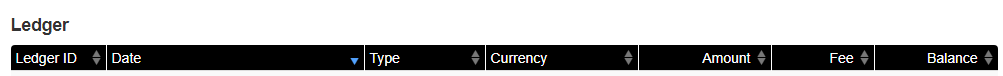 Nach ein paar Minuten erscheint der Trade auch im unteren Bereich Ledger der Seite. Die entstandenen Gebühren werden dort ebenfalls angezeigt.
