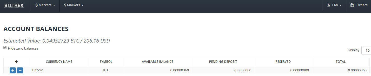 Nachdem genügend Bestätigungen eingegangen sind, werden die Bitcoin bei Bittrex unter Wallets angezeigt.